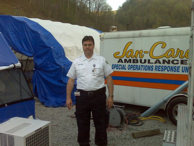 Jan-Care Ambulance’s missions included Mass Casualty Incident command, direct support of multi-state mine rescue teams, ambulance staging for possible mass retrieval of miners, and continuous support for the hundreds of family members encamped at the on-site UBB Family Center.